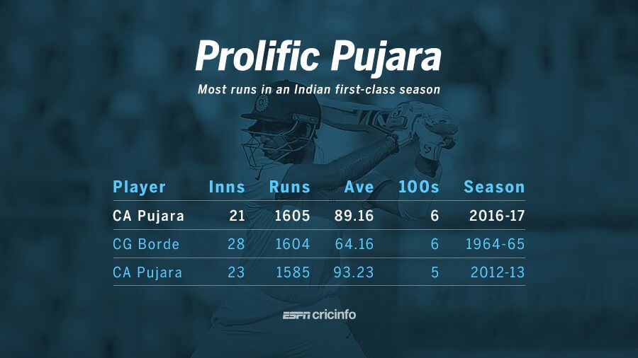 Stats Cheteshwar Pujara Breaks Record For Most Runs In An Indian First Class Season