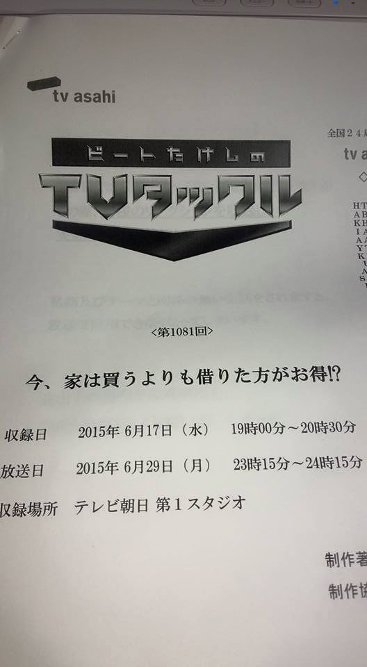 ビートたけしのtvタックル 6月29日放映 に出演 大久保悦次の 常在戦場 楽天ブログ