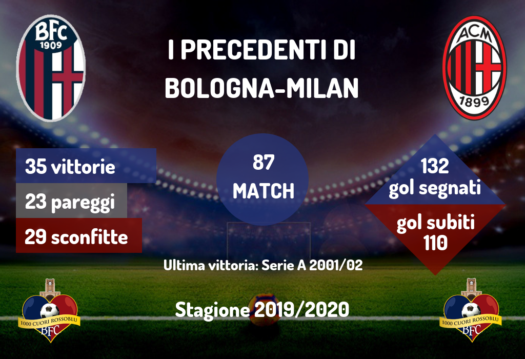 Il Centro Bologna Clubs chiede un incontro. Dal dicembre 2010 ad oggi Bologna e Milan si sono affrontate per 20 volte tutte in Serie A e nessuna in Coppa Italia.