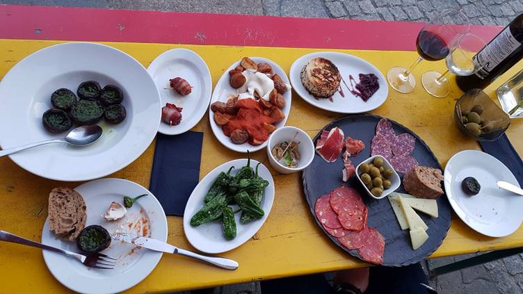 We found a table at the back and went for a plate of selected cold tapas and a plate of mixed seafood tapas. Dircksenstrasse 40 501421 mi Berlin Germany 10178. Die Karte war in Bezu.